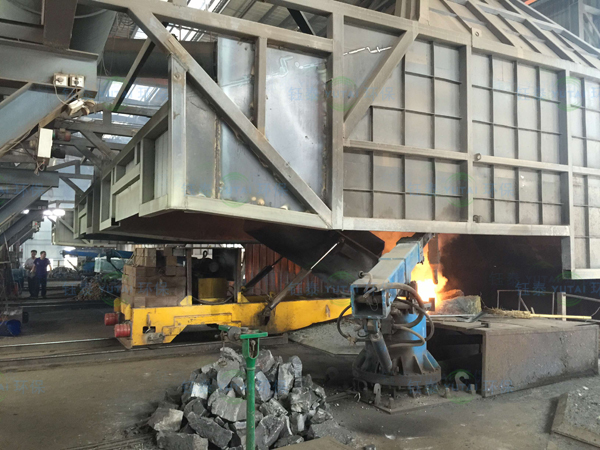 中頻爐冶煉煙氣除塵采用移動式半密閉的集煙形式,輔以液壓加料車加料、鋼包車出鋼,可實(shí)現(xiàn)煙氣在加料期、冶煉期、出鋼期全過程捕集。加料車的使用提高了加料作業(yè)效率,減少了人工操作。鋼包車的使用除滿足環(huán)保除塵效果外,降低了漏鋼穿爐等出鋼事故發(fā)生的概率,使中頻爐出鋼更為安全。