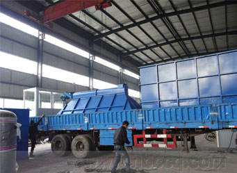 浙江寧波北倫電廠粉煤灰處理用PPC96-8布袋除塵器運(yùn)抵現(xiàn)場(chǎng),正在卸車(chē)。