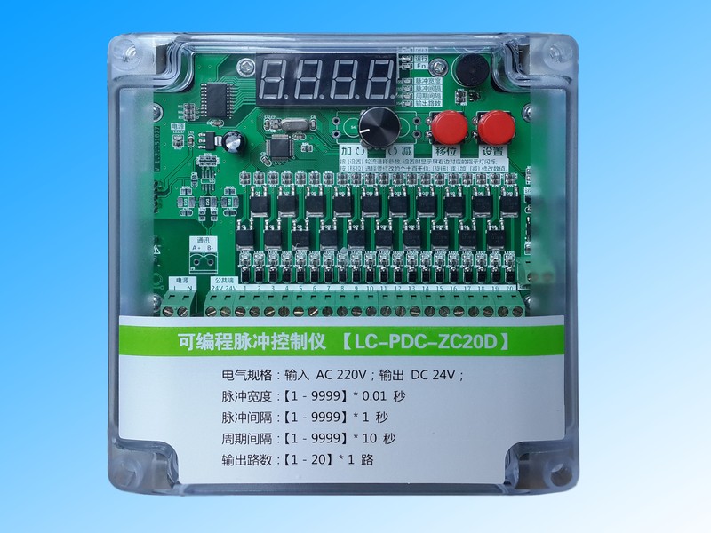 脈沖袋式除塵器控制儀 LC-PDC-ZC20D (在線式 20路 ),此款控制儀電壓有24V和220V兩款,購買時(shí)請(qǐng)告知客服選用電壓,以免為您造成不必要的損失。此款脈沖控制儀輸出路數(shù)可調(diào),凡是所控脈沖閥數(shù)量為20個(gè)以下,全部可以使用。