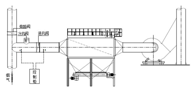 煙氣溫度一旦高于除塵器正常使用溫度,自動(dòng)控溫裝置啟動(dòng)冷風(fēng)閥,放進(jìn)冷風(fēng),同時(shí)電鈴自動(dòng)報(bào)警,提示操作工采取降溫措施;當(dāng)煙氣溫度降至正常使用溫度時(shí),冷風(fēng)閥自動(dòng)關(guān)閉,操作也恢復(fù)正常;當(dāng)采取放冷風(fēng)后,煙氣溫度仍超過(guò)除塵器的允許O高溫度時(shí),進(jìn)風(fēng)閥會(huì)自動(dòng)關(guān)閉,旁路閥打開(kāi),煙氣進(jìn)入旁路煙道排空,確保除塵器的安全運(yùn)行。